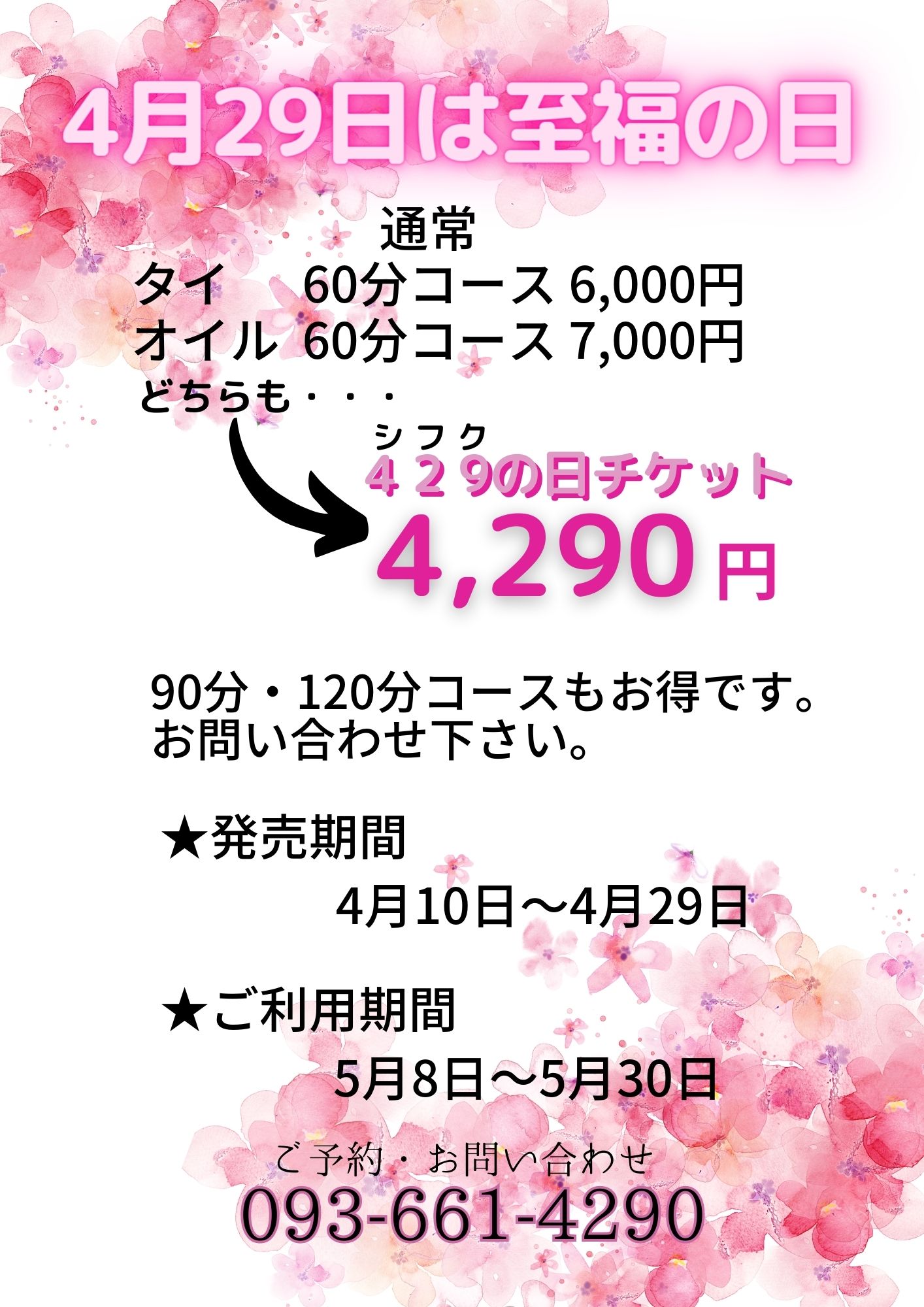 ※タイマッサージ、オイルマッサージ、どちらも同額です。※使用期間中に使える枚数、何枚でもご購入いただけます。※使用期間が過ぎても金券としてご使用できます。