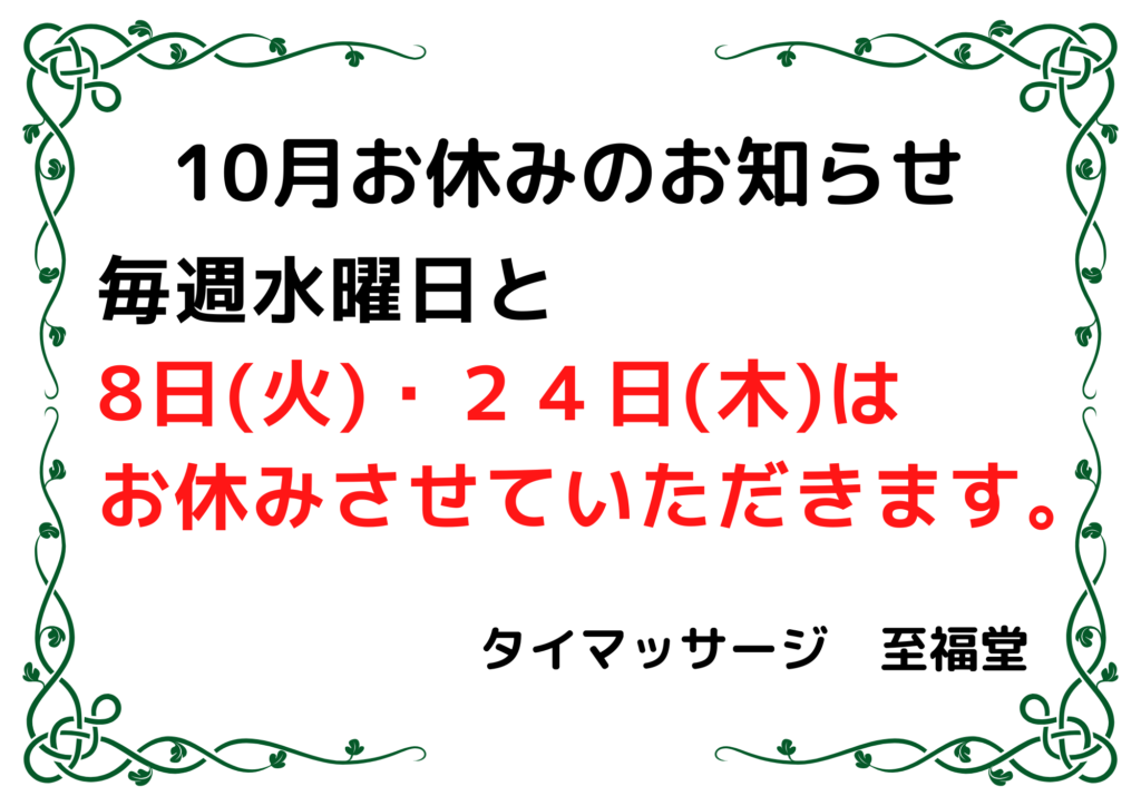 10月お休みのお知らせ