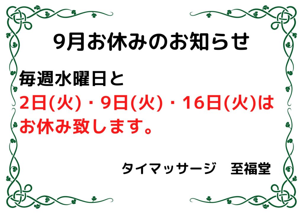 9月お休みのお知らせ