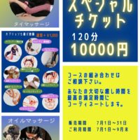 毎年恒例のスペシャルマッサージチケットを販売します。 メニューの中から組み合わせ自由! 一番人気は、タイマッサージ60分オイルマッサージ60分の組み合わせです。 詳しくはスタッフにお尋ねください。 ★自分へのご褒美に ★ …